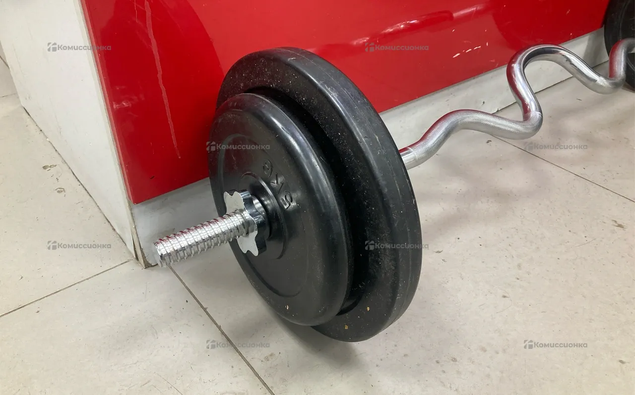 Купить Изогнутый гриф и блины (2х10-2х5) б/у