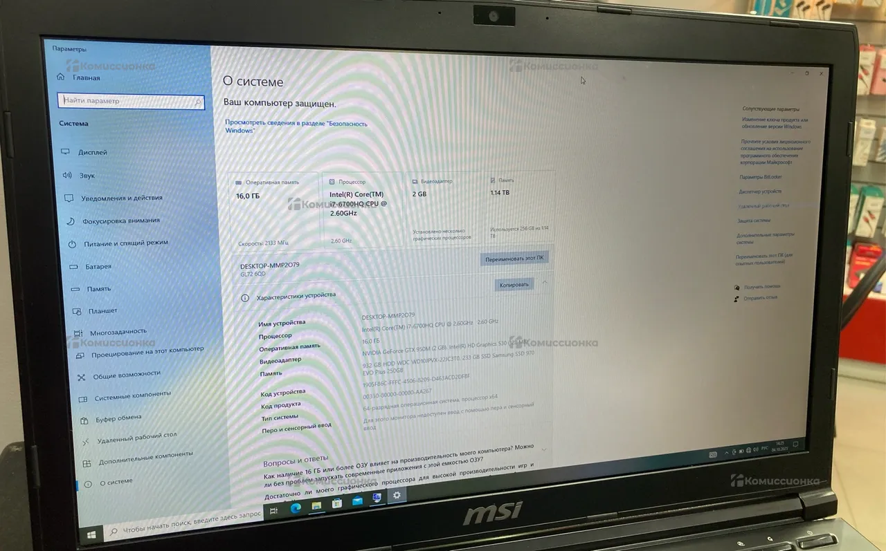 Продажа Ноутбук MSI gl72 6qd б/у по выгодной цене. Стоимость